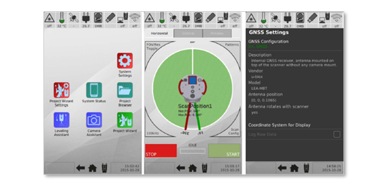 현존하는 모든 기술력이 내포된 VZ-400i 본체 무게는 9.7kg의 경량임에도 불구하고 현장에서 구동 노트북 없이 기본으로 내장된 User Interface를 통해 256 GByte SSD 메모리로 데이터 저장이 가능하며, GNSS(L1) 수신기, MEMS IMU 3축 자세보정센서, 디지털 콤파스, 고해상도 외장형 DSLR 포토그래메트리 시스템 등 현장에서의 업무효율 극대화 위한 다채로운 기능이 있습니다.