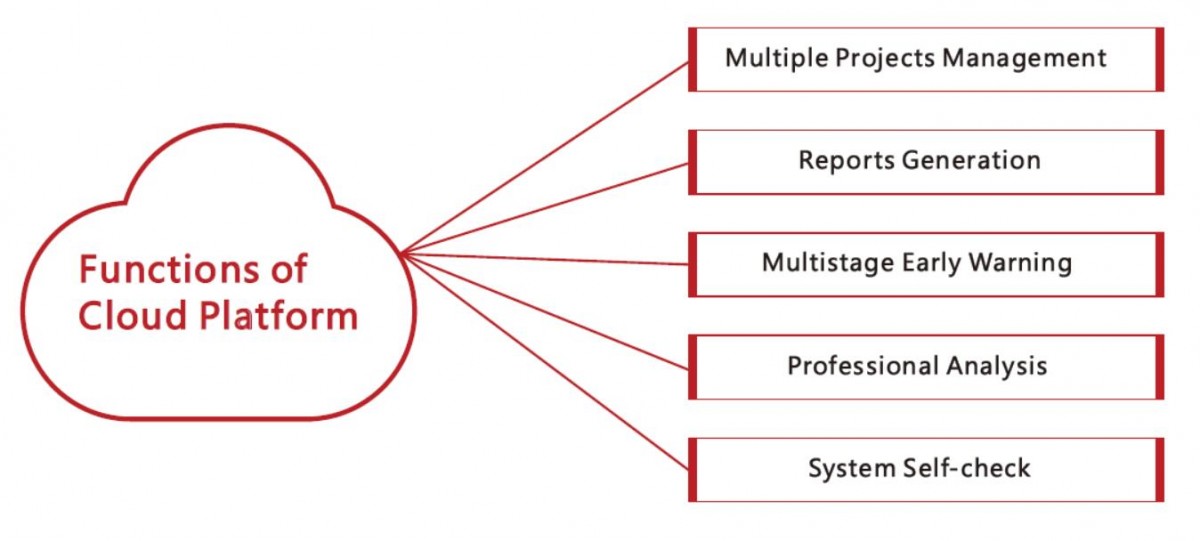 The monitoring early warning cloud platform is designed for geotechnical engineering projects. It is suitable for multiple real-time monitoring projects, such as slope displacement, tunnel construction, road settlement, bridge deflection, dam settlement and lateral displacement, building construction,etc . Mainly monitor displacement, inclination vibration. The cloud platform has functions such as real-time acquisition of monitoring data cloud comprehensive processing, diversified chart display , professional correlation analysis , disaster warning and alarm , report statistics and so on . Besides, the cloud platform can manage multi-project and multi-equipment at the same time, and provide safe reliable, real-time, comprehensive, timely and efficient information service. ...